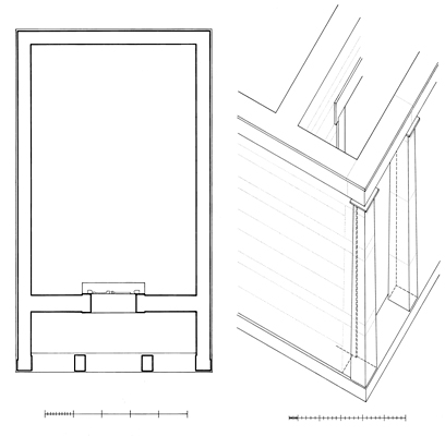 Three relatively small, rectangular buildings made of local sandstone are aligned along the western perimeter of the Sanctuary, north of the Stoa on the Western Hill and west of the large unfinished Hellenistic structure (Building A) of an earlier date. The northern two buildings (1 and 2) faced each other, while the southern-most building (3) was oriented toward the south. Building 1, the largest, had a hexastyle prostyle porch, most likely of the Doric order. Building 2 had a porch composed of two columns in antis. In Building 3, pillars rather than columns formed the two supports of the façade. In scale and design these three buildings resemble treasuries found at other Greek sanctuaries such as Delphi, Olympia, Nemea and Delos. However, their function at Samothrace remains uncertain.